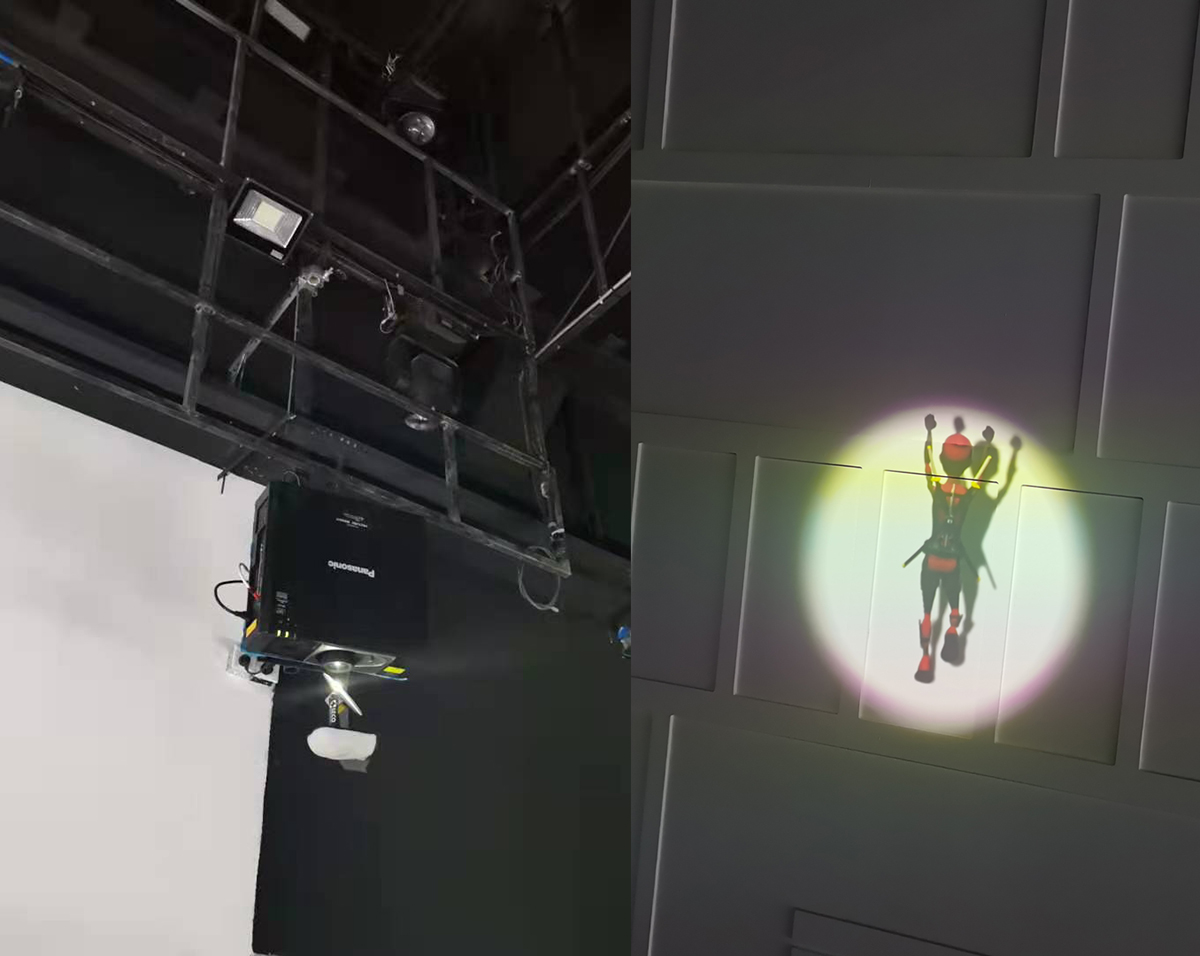 系统介绍:项目使用1台松下PT-SRQ35KC激光光源工程投影机对宽6.4米,高4米的墙面进行投射。松下PT-SRQ35KC拥有32,000流明的高亮度和20,000:1的对比度,4倍像素驱动模式下即享4K分辨率,单台即可清晰细腻的呈现出25.6平方米的巨幅画面,同时实现1016Lux的屏前照度。由于展项内部空间有限,因此利用ET-D3LEU100C拐角镜头巧妙调整了投影机的方向,有效缩短了投距以及投影机和正门的距离,灵活解决了“小空间、大画面”的投射难题。